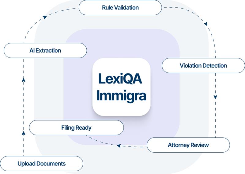 LexiQA Immigra is an AI-driven document intelligence platform that automates pre-submission verification for H1, H4, and H4-EAD cases.